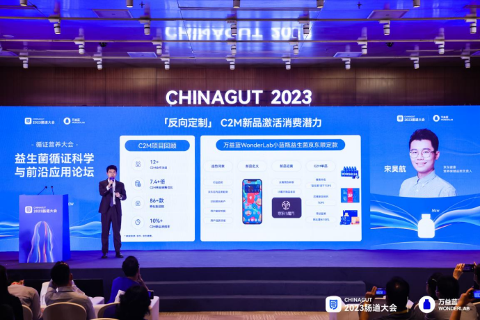 期间,万益蓝WonderLab主办2023肠道大会循证营养大会益生菌循证科学与前沿应用论坛,京东健康营养保健品类负责人宋昊航受邀出席,向到场嘉宾深入分享了京东健康面对益生菌行业机遇的战略布局及循证洞察。