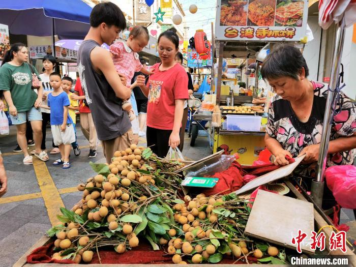 7月,台山台城街道商业步行街一摊主刚摆上龙眼就吸引不少顾客。 李晓春 摄