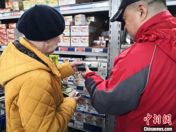 资料图:俄罗斯市民在超市挑选来自贵州的茶叶产品。周智超摄