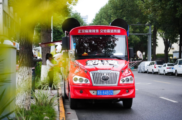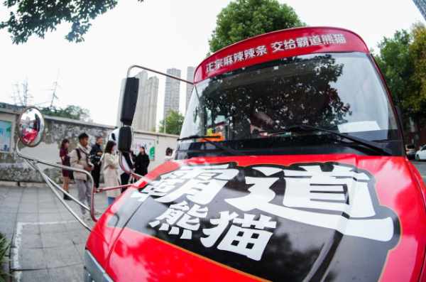 霸道熊猫麻辣巴士结合产品形象,以独特鲜明的卫龙红配色搭配熊猫造型萌动出街,新晋成为网红城市成都的熊猫圈顶流IP,用正宗川式麻辣成功点燃成都寒冬。
