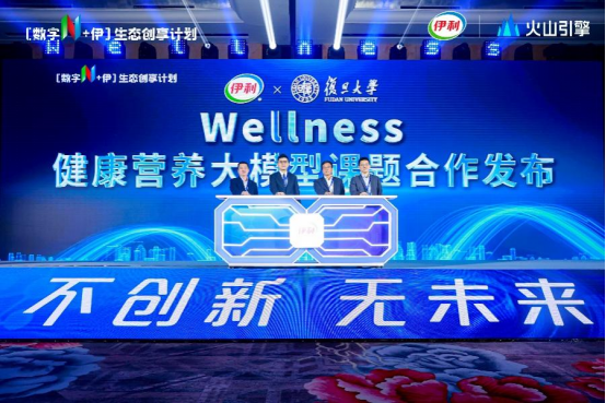 当天启动仪式现场,还有重磅AI项目揭晓。伊利和复旦大学大数据学院共同发布了wellness健康营养大模型课题合作,该项目将进一步推动健康营养领域的数字化进程,为行业注入新的活力。
