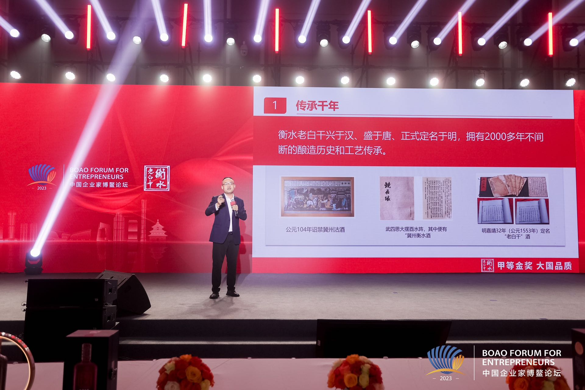 在衣袂飘然的汉朝《相和歌》的乐舞声中,2023年中国企业家博鳌论坛衡水老白干1915之夜拉开帷幕。