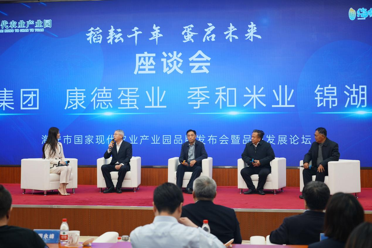 海安市农业农村局党组书记、局长臧忠介绍产业园发展成效,推介海安大米产业和禽蛋品牌,现场发布了“海安大米”“海安鸡蛋”两个品牌的标识设计。臧忠说:海安大米、海安鸡蛋有深厚的历史底蕴、坚实的产品品质和广阔的市场未来。海安市以创建国家现代农业产业园为契机,持续打造区域公用品牌、企业品牌、产品品牌的品牌矩阵。