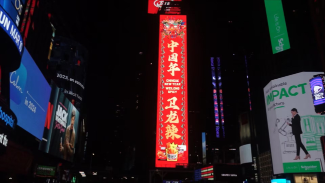 为响应“让世界人人爱上中国味”的企业愿景,卫龙美味新春广告惊喜亮相纽约时代广场,让海外侨胞们远在异国他乡也能轻轻松松感受到中国年味。
