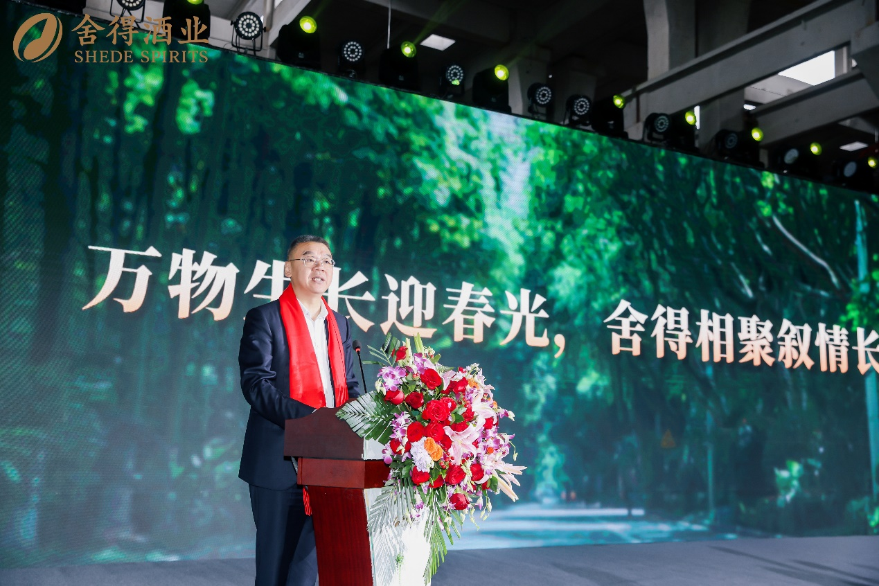 舍得酒业董事长蒲吉洲对现场来宾表示热烈欢迎,并在《春酿如金老酒天成 品味舍得共敬人生》的主题讲话中,用对历史、时代与未来的三重“致敬”,深度阐述舍得酒业在推动传统白酒文化实现创造性转化与创新性发展方面做出的努力。