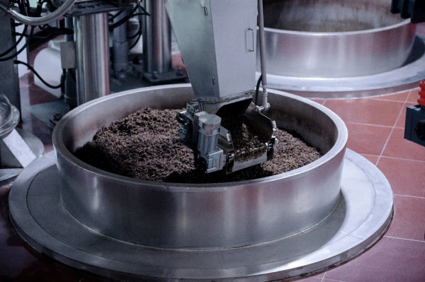 在国台酒庄制酒车间里,车间内的上甑机器人也正在忙碌地工作中,它们负责将出窖的糟醅,按照“见汽压醅”和“轻、松、薄、准、匀、平”标准,投入到每一个酒甑中,能自动调节蒸汽压力,严格按照工艺要求上甑。