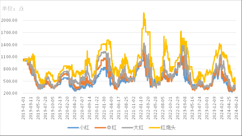 不同规格红虾价格走势(单位:点)