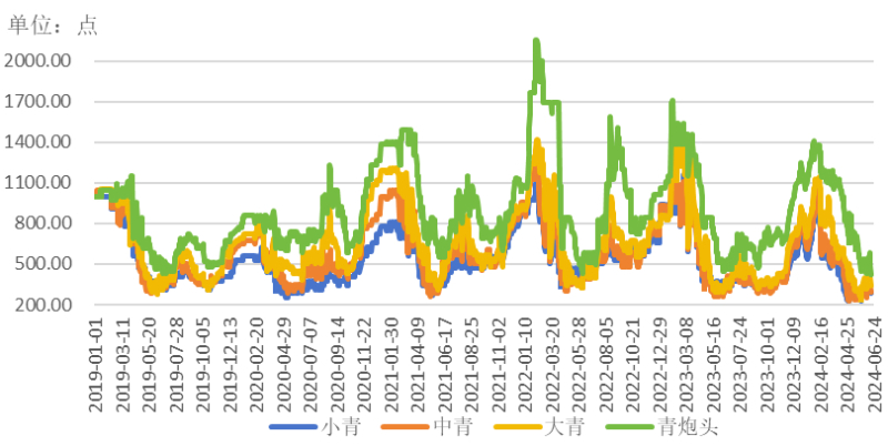 不同规格青虾价格走势(单位:点)