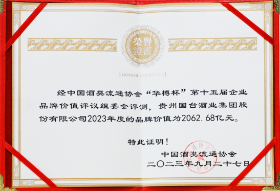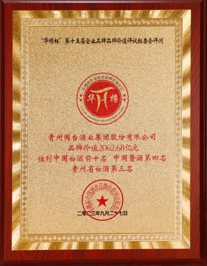 常年以来,国台无论从销售规模、品牌价值、纳税额等方面,综合实力都稳居贵州白酒第三。最新权威数据显示:2023年,经中国酒类流通协会“华樽杯”第十五届企业品牌价值评议组委会评测,国台以2062.68亿元的品牌价值,蝉联中国白酒第十名、贵州白酒第三名。
