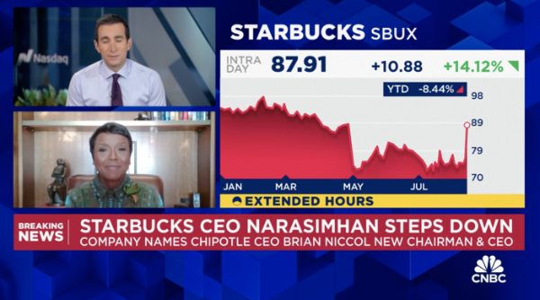 而对新CEO的评价,舒尔茨则透露Niccol在Chipotle的经验令自己感到敬佩,并得到了自己的全力支持。“他对人员和文化、品牌、菜单创新、运营及数字化转型的关注为行业树立了新标准,推动了显著增长,并创造了价值。”星巴克表示。董事会主席Mellody Hobson也在采访时表态,她认为Niccol在餐饮领域的经验可助力星巴克。