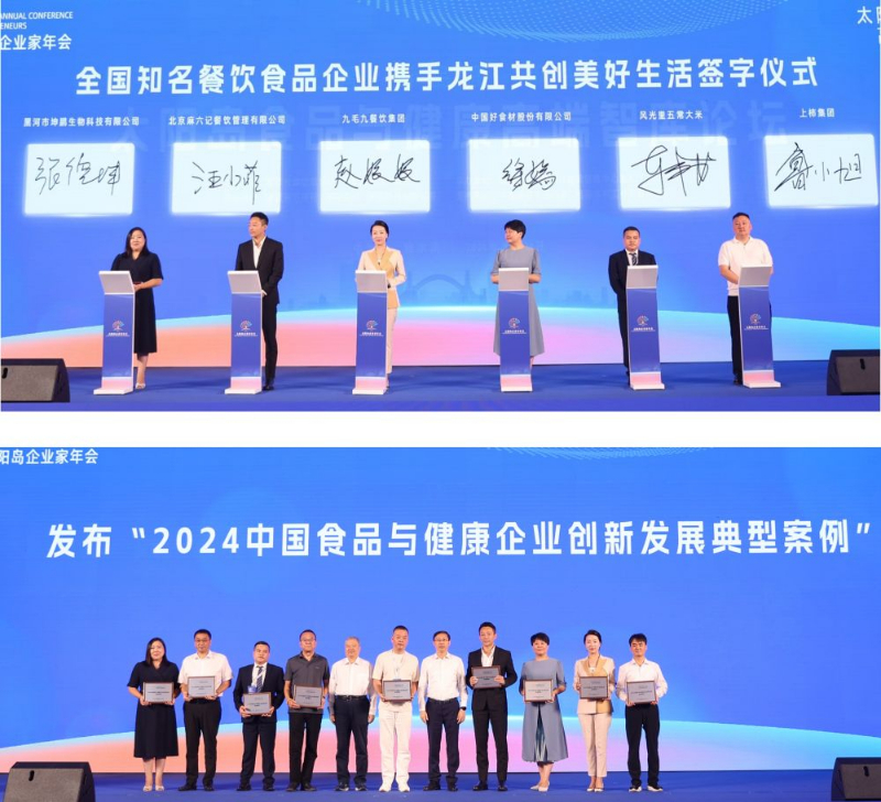 论坛最后举行了全国知名餐饮食品企业携手龙江共创美好生活签字仪式,并发布“2024中国食品与健康企业创新发展典型案例”,为食品与健康产业的未来发展提供借鉴。