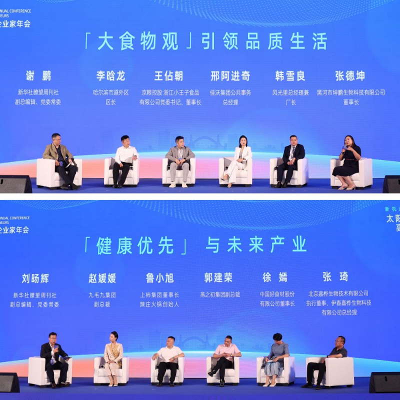 论坛圆桌环节围绕以“大食物观”引领品质生活和“健康优先”与未来产业两个主题,邀请哈尔滨道外区政府、九毛九集团、中国好食材公司、京粮控股浙江小王子食品公司、佳沃集团、风光里公司、伊春嘉桦公司、上柿集团、燕之初集团、黑河市坤鹏生物科技公司等政企负责人对话,就食品产业创新、健康产业发展趋势等深入讨论,为行业发展提供了新思路、新案例。