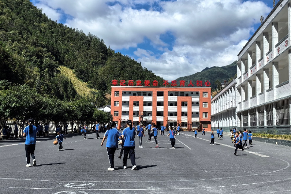 竹溪县桃源乡中心学校课间休息,学生们在操场活动
