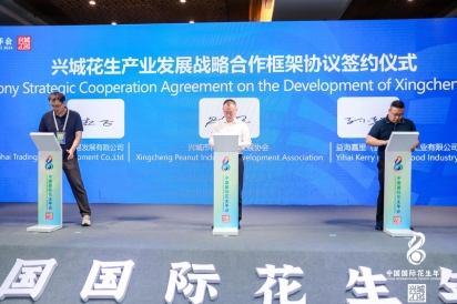 会上,曹德荣与宋丹签署“兴城市人民政府与中国食品土畜进出口商会战略合作协议”;代小冬、傅春杰签订“中国花生种业大联盟合作单位战略协议”;兴城市花生产业发展协会常务副会长陆双玉、浙江济海贸易发展有限公司总监赵飞、益海嘉里(盘锦)食品工业有限公司主任孙超签订“兴城花生产业战略合作框架协议”。