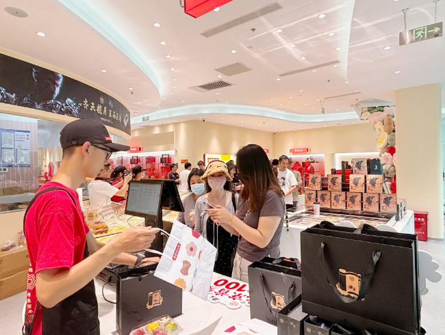 在成都,稻香村位于昭觉寺动漫城的主题新店于国庆节当日正式开业,吸引了大量年轻消费者。新店所在的天府国际动漫城,汇聚众多动漫IP,是年轻人新聚集地。充满青春气息的门店设计,将成都特有的熊猫元素融入其中,另外还新增各类时尚饮品,让老字号稻香村焕发出新的品牌活力。很多消费者称赞,全新的门店形象令人耳目一新,完全打破了中式糕点的传统门店印象。据门店工作人员介绍,国庆期间客流络绎不绝,店内除了数十种中式糕点,还特别推出成都和熊猫主题的特色城市伴手礼盒,在国庆假期成为热销产品。很多年轻人在朋友圈、抖音、小红书等社交平台看到新店开业消息后纷纷前来打卡。