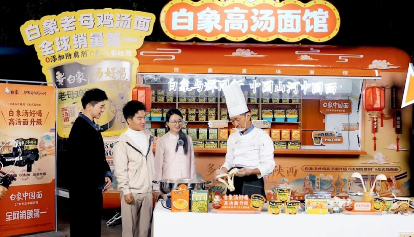 10月9日至10月12日,白象中国面与文旅直播栏目「与辉同行阅山河」的“中国山河中国面”探索之旅来到面食文化圣地陕西,带领观众一起品味陕西的多“面”风情。全新升级“0添加防腐剂*0反式脂肪酸”的白象汤好喝高汤面,亮相与辉同行直播间,爽滑劲道的口感获与辉同行主播团和面食大师双双点赞。