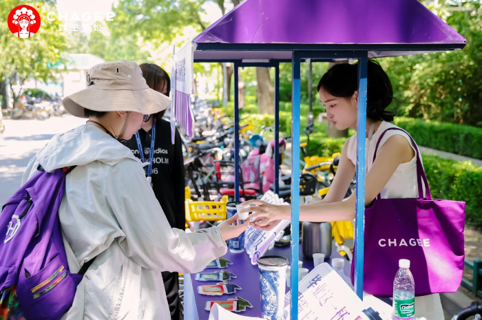 此外,霸王茶姬也推出多项活动加深与学生茶友的链接。例如,发起“CHAGEE NEW青年艺术共创计划”,携手青年艺术家Jessica杨沅乔推出联名周边,以艺术赋能品牌,为年轻消费者带来独特体验。