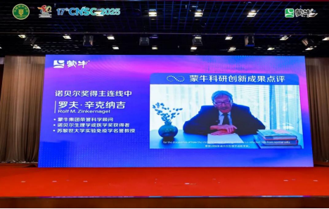 Rolf M. Zinkernagel教授通过视频连线表示,蒙牛将基础科研转化为大众健康实践的能力达国际顶尖水平,正走在科学创新的正确道路上。