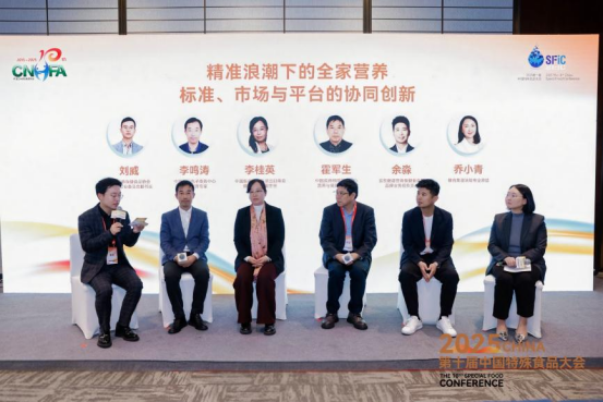 此次圆桌讨论环节,由中国营养保健食品协会新消费专业委员会秘书长刘威主持,邀请中国国际电子商务中心电商首席专家李鸣涛、中国医药保健品进出口商会健康事业部副主任李桂英、中国疾病预防控制中心营养与健康所研究员霍军生、京东健康营养保健业务部品牌业务组负责人余淼、健合集团法规专业总监乔小青共同参与,围绕“精准浪潮下的全家营养——标准、市场与平台的协同创新”展开分享和探讨,旨在推动科研成果转化为适销的全家营养产品,构建“标准引领、市场驱动、平台赋能”的协同创新格局,让精准营养真正惠及全家人。