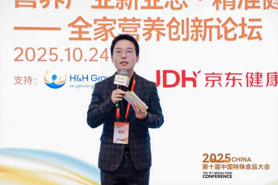 国家市场监督管理总局特殊食品安全监督管理司原司长、全国特殊食品标准化技术委员会主任委员周石平出席会议并发表致辞,他表示,在“健康中国2030”纲要与《国民营养计划》不断推进的背景下,人口结构变化使“全家营养”成为民生刚需,这既为特殊食品产业带来机遇、也提出了更高要求。更重要的是,“全家营养”非简单产品叠加,需构建从“营养需求识别”到“精准供给落地”的创新链条,呼吁政府优化监管服务、行业组织推动标准落地、企业扛起主体责任,为特殊食品产业高质量发展与健康中国建设贡献力量。