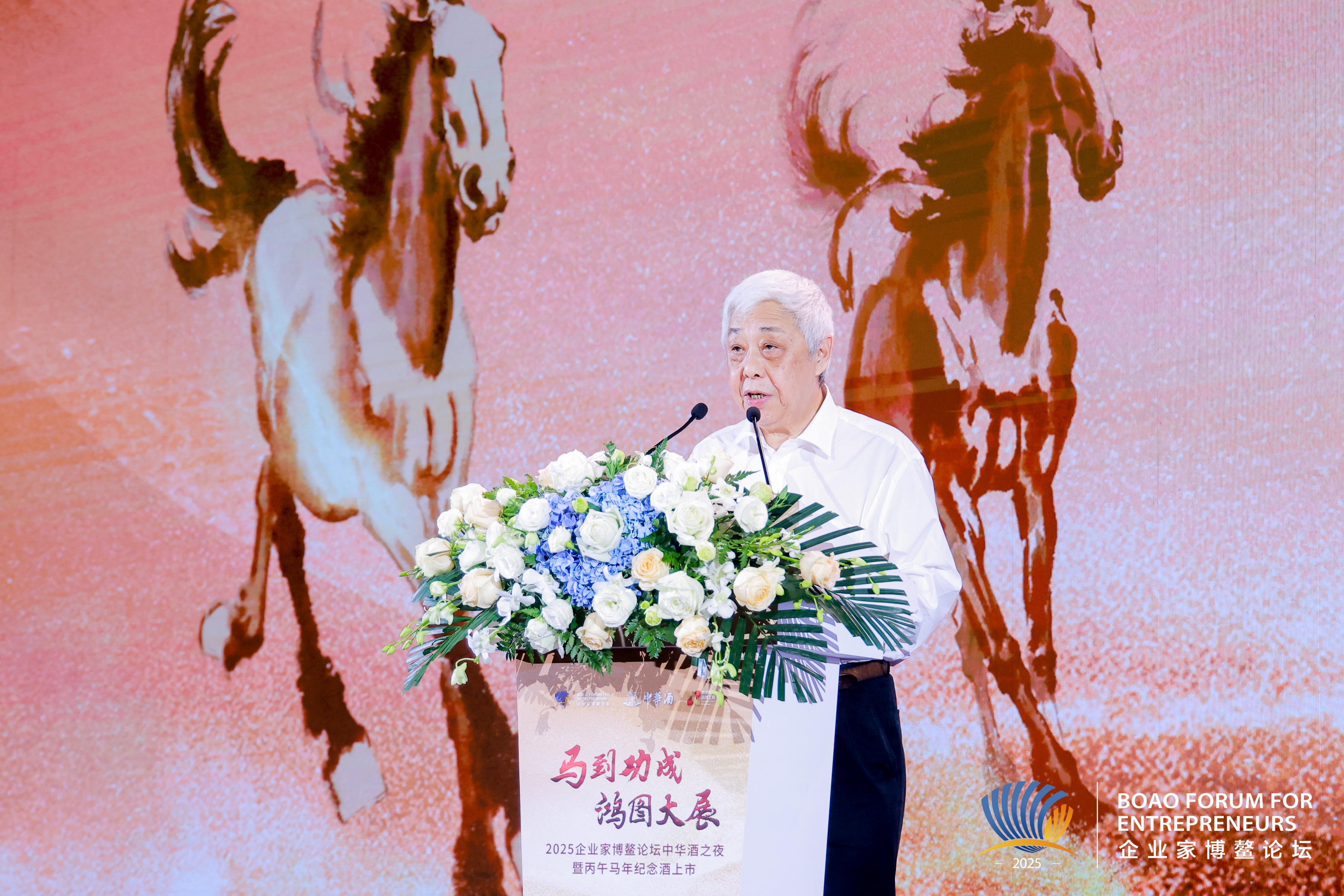 12月的博鳌碧波映翠,万泉厅内文脉交融。12月2日,2025企业家论坛“中华酒之夜”暨丙午马年纪念酒上市发布会于南海之滨启幕,活动以“马到功成 鸿图大展”为主题,三百多位知名企业家、专家学者、文化名人共聚一堂,在这场“以酒为媒、以马为魂”的文化盛宴中,见证中华酒(丙午马年纪念酒)的荣耀上市,共鉴这一经典白酒品牌的时代新生。