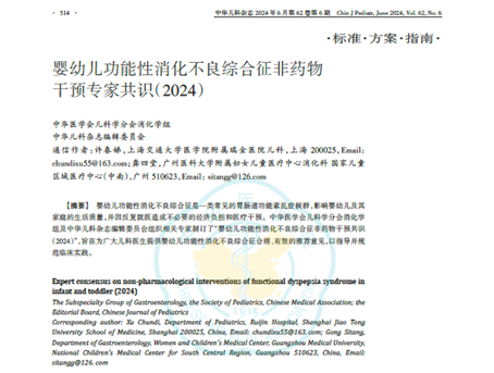 《婴幼儿功能性消化不良综合征非药物干预共识(2024)》
