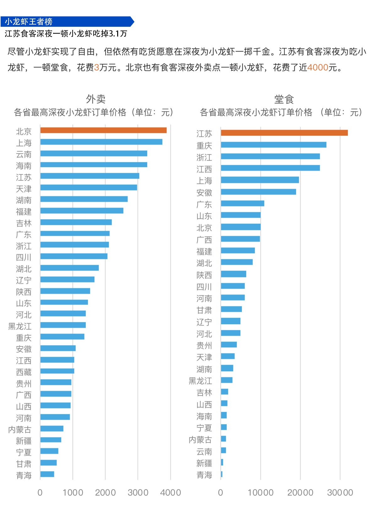 今夏全国近9成省份的深夜小龙虾同比2018年单价下降,其中尤以京沪两地降幅最大,平均降幅超过35%,这意味着北京、上海的吃货们能率先享受到物美价廉的小龙虾。