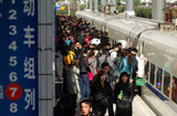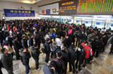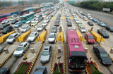 南宁出现返程车流高峰 收费站前车辆排队1公里