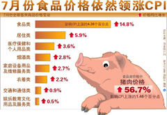 | “当前价格水平仍处高位,不过7月份的涨幅并没有超出市场预期。其中,猪肉价格上涨较快,继续成为CPI的推手。”中国社科院经济研究所宏观经济室主任张晓晶说。根据国家统计局发布的数据,7月份6.5个百分点的CPI同比涨幅中,食品类价格上涨占4.38个百分点。其中,猪肉价格同比上涨56.7%,为CPI“贡献”约1.46个百分点。 …[详细] |