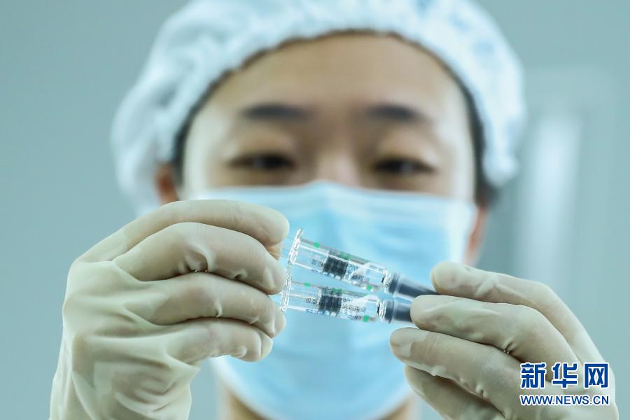 工作人员在国药集团中国生物北京生物制品研究所的新冠病毒灭活疫苗分包装车间内检查产品包装质量(2020年12月25日摄)。新华社记者 张玉薇 摄