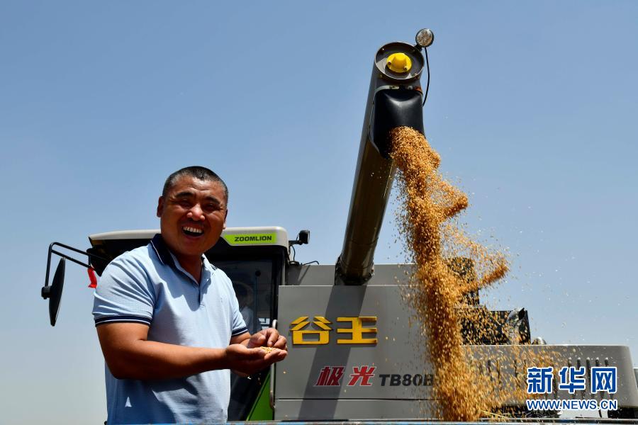 在汶上县郭仓镇,种粮大户郭波波在收获小麦(2020年6月3日摄)。新华社记者 郭绪雷 摄
