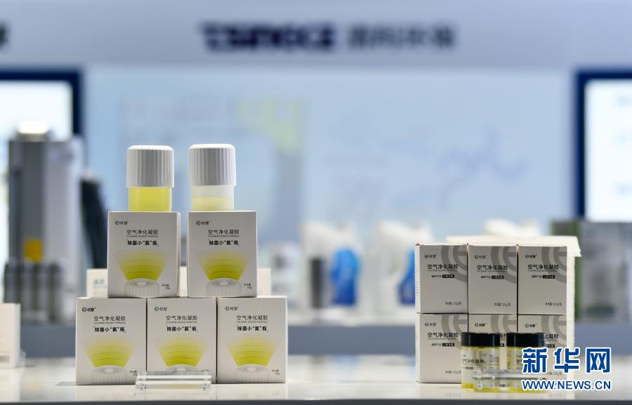 这是清华大学天津高端装备研究院清科环保团队自主研发的二氧化氯空气净化凝胶(1月15日摄)。新华社发(孙凡越 摄)