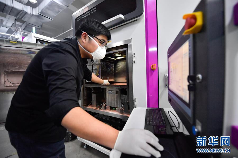 在清华大学天津高端装备研究院增材制造技术与工程研究所内,工作人员为金属3D打印机设置参数(1月15日摄)。新华社发(孙凡越 摄)