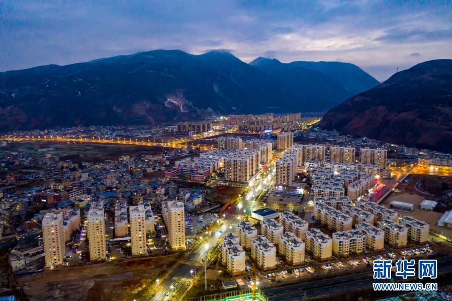 易地扶贫搬迁县城集中安置区会泽新城(2021年1月17日摄,无人机照片)。新华社记者江文耀摄