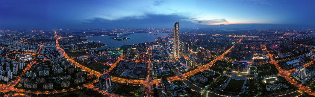 新华社照片,苏州工业园区夜景(2020年8月20日无人机拍摄拼接)