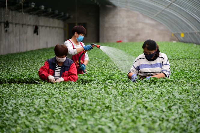 新华社照片,河北曲周县一家育苗产业基地的工人在育苗温棚内工作。当地积极拓宽产业扶贫渠道,带动群众脱贫增收,向着共同富裕的目标不断迈进。(2020年5月4日摄)