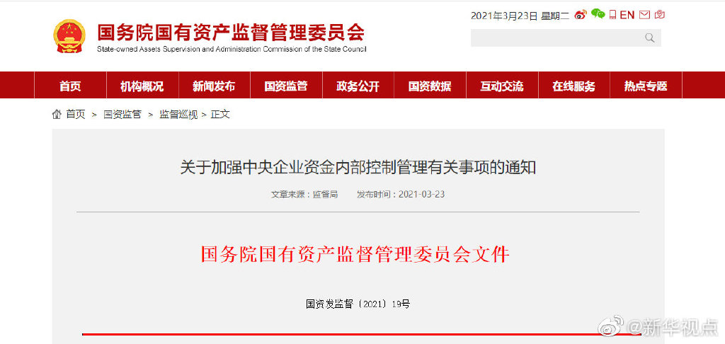国务院国资委网站23日发布《关于加强中央企业资金内部控制管理有关事项的通知》,围绕央企健全资金内控管理体制机制、加强资金内控制度建设、强化关键环节监管等工作做出安排。就境外资金风险管控,通知要求各央企内控部门完善境外资金内控监管制度,促进境外资金合规管理,加强境外资金风险防范,加大对境外单位大额资金监督力度。(记者 王希)