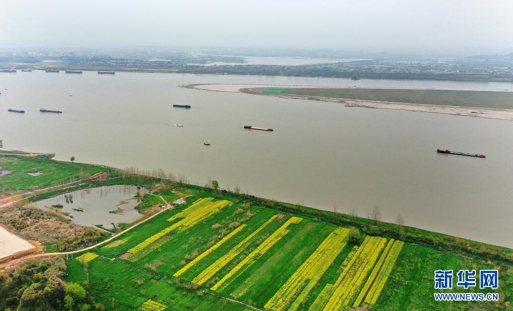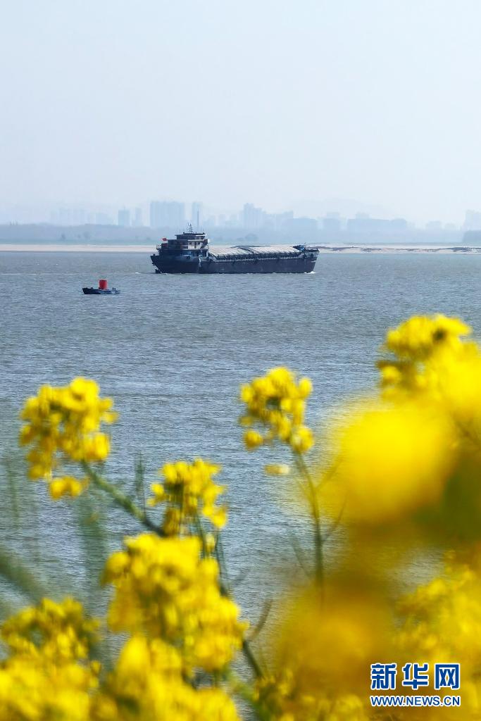 船舶在航标的指引下行驶在长江黄冈段(3月25日摄)。新华社发(殷黎 摄)