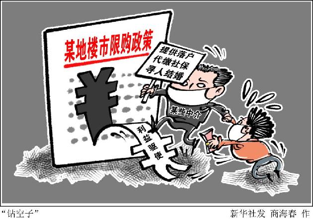 除了经营贷违规流入楼市外,提供落户、代缴社保、寻人结婚等服务也是房产中介的“拿手好戏”,只要炒房客有需求、肯出钱,中介就会想方设法助其一臂之力,让其突破限购、限贷政策。