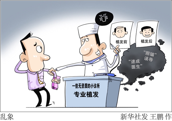 业内人士透露,目前专业植发人员严重不足。有的植发机构有执照的医生只是挂名,大量手术由无资质人员操作;有的美容美发店与无资质人员合作,推荐消费者植发,然后从中分成。