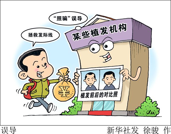 ——“照骗”误导消费者。一些植发机构在网络社交媒体上发布客户植发前后的对比照吸引消费者。但实际上,不少照片都是手术结束后不久照的,难以说明真正的效果。