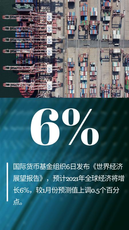 新华社快讯:国际货币基金组织6日发布《世界经济展望报告》,预计2021年全球经济将增长6%,较1月份预测值上调0.5个百分点。