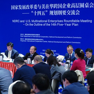 这场被美国在华跨国企业点赞的会议,是13日举行的国家发展改革委与美在华跨国企业高层圆桌会首场交流会。来自47家美国在华商会、企业的60位代表与国家发展改革委副主任宁吉喆及相关司局负责人围绕“十四五”中国发展和市场机遇进行了深入交流。