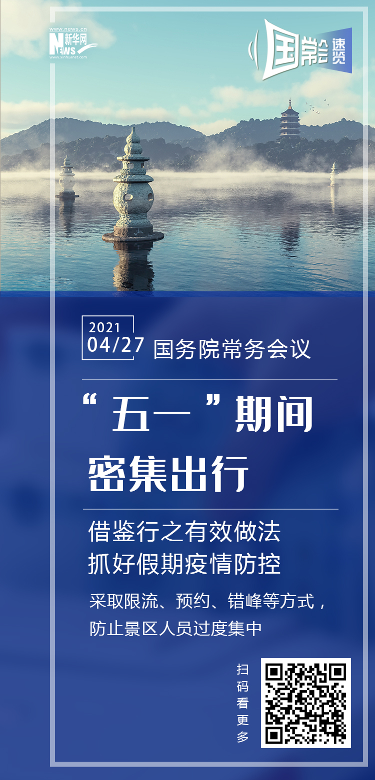 4月27日召开的国务院常务会议指出,针对“五一”假期期间人员密集出行,国务院联防联控机制要完善举措,指导各地各部门强化责任,借鉴之前行之有效做法,毫不放松抓好假期疫情防控,严格落实常态化防控措施,采取限流、预约、错峰等方式,防止景区等场所人员过度集中。