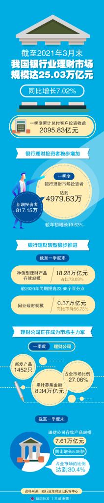图表:截至2021年3月末我国银行业理财市场规模达25.03万亿元新华社发 王威 制图