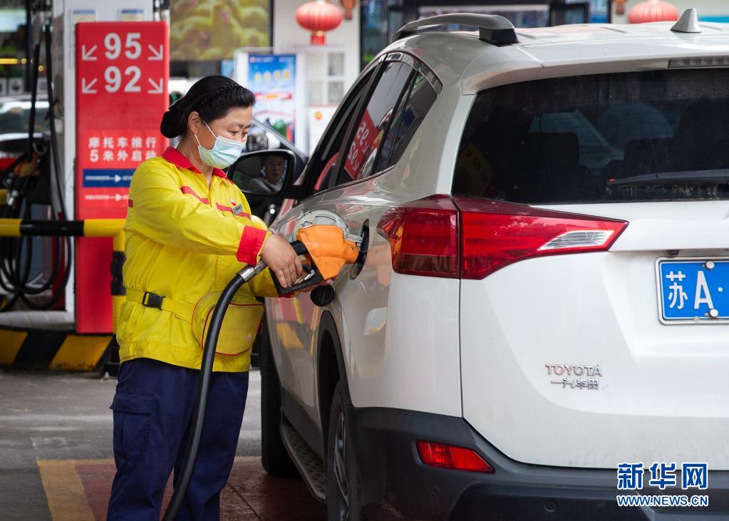 5月14日,江苏南京一加油站的工作人员给车辆加油。新华社发(苏阳 摄)