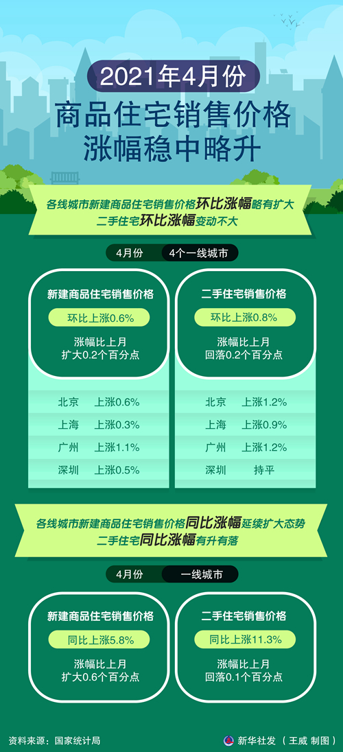 新华社北京5月17日电 题:4月份商品住宅销售价格涨幅稳中略升 调控政策持续发力