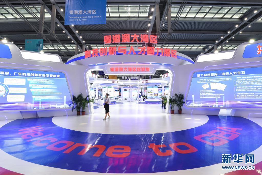 与会者走过中国国际人才交流大会设立的粤港澳大湾区科技创新与人才智力展区(4月24日摄)。新华社记者 毛思倩 摄