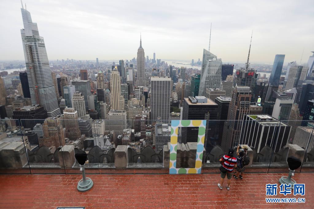 人们在美国纽约洛克菲勒中心观景台上观看城市景观(2020年8月6日摄)。新华社记者 王迎 摄
