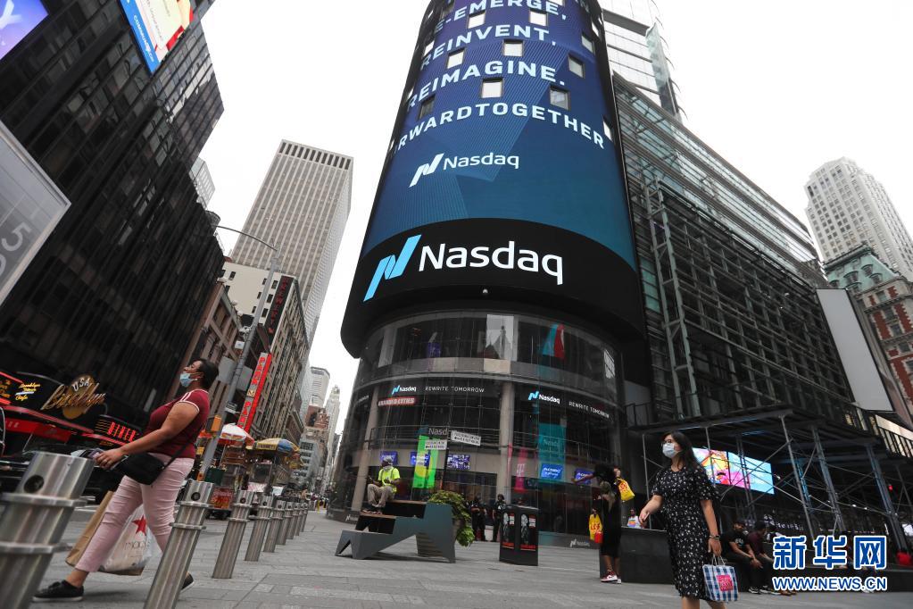 人们从美国纽约纳斯达克证券交易所外走过(2020年9月3日摄)。新华社记者 王迎 摄
